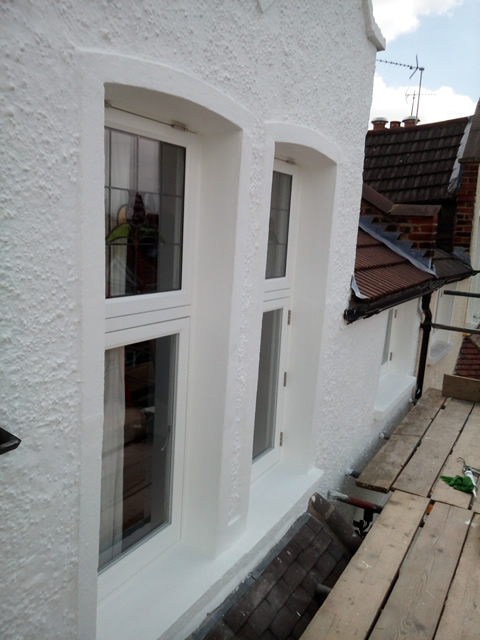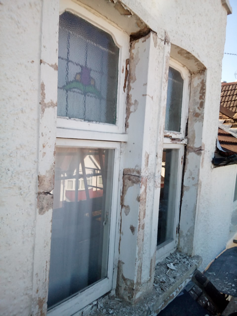 The stonework around these windows was in a very poor state. After removing all the loose paint we repaired the stonework prior to the preparasion for decorating.